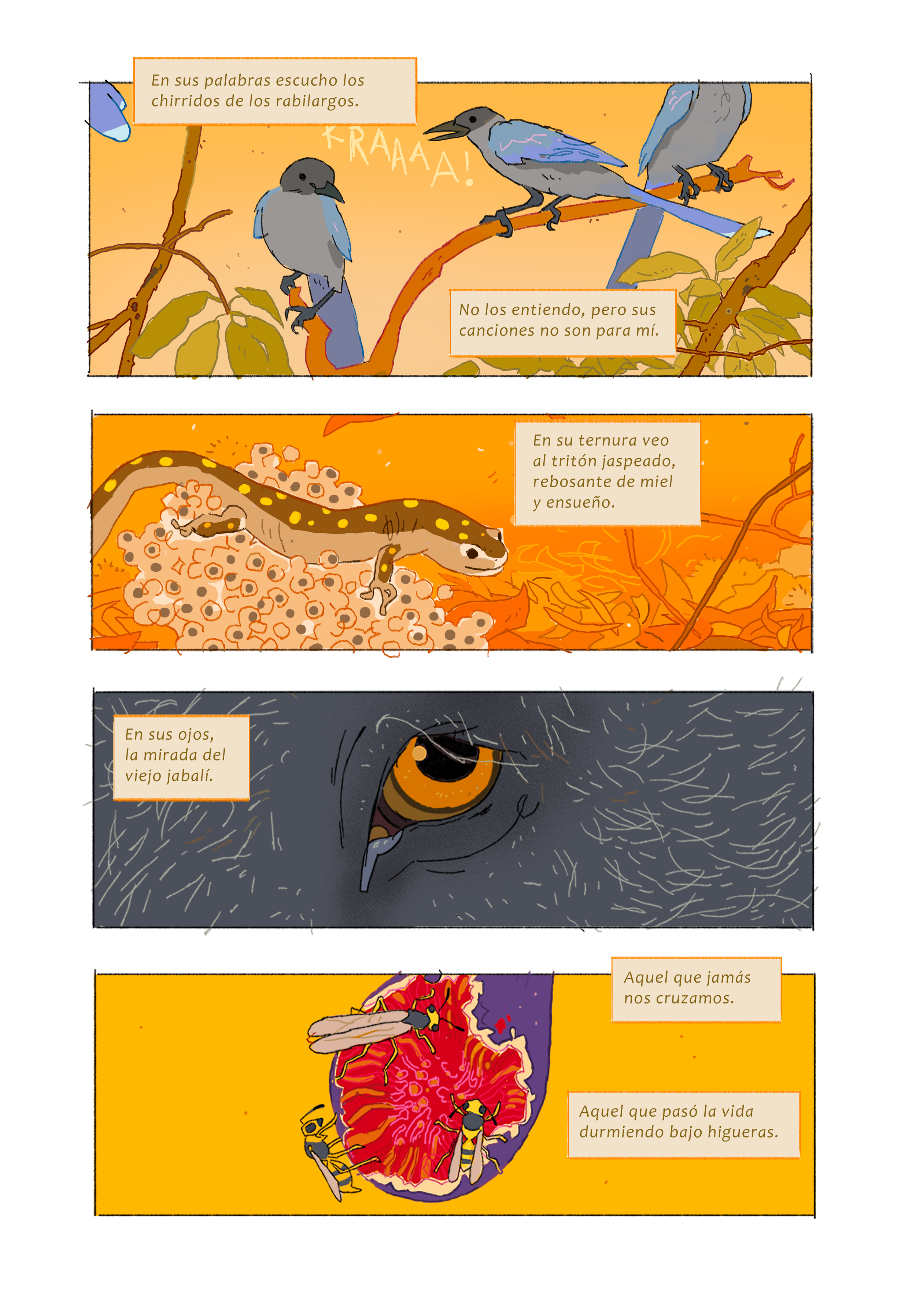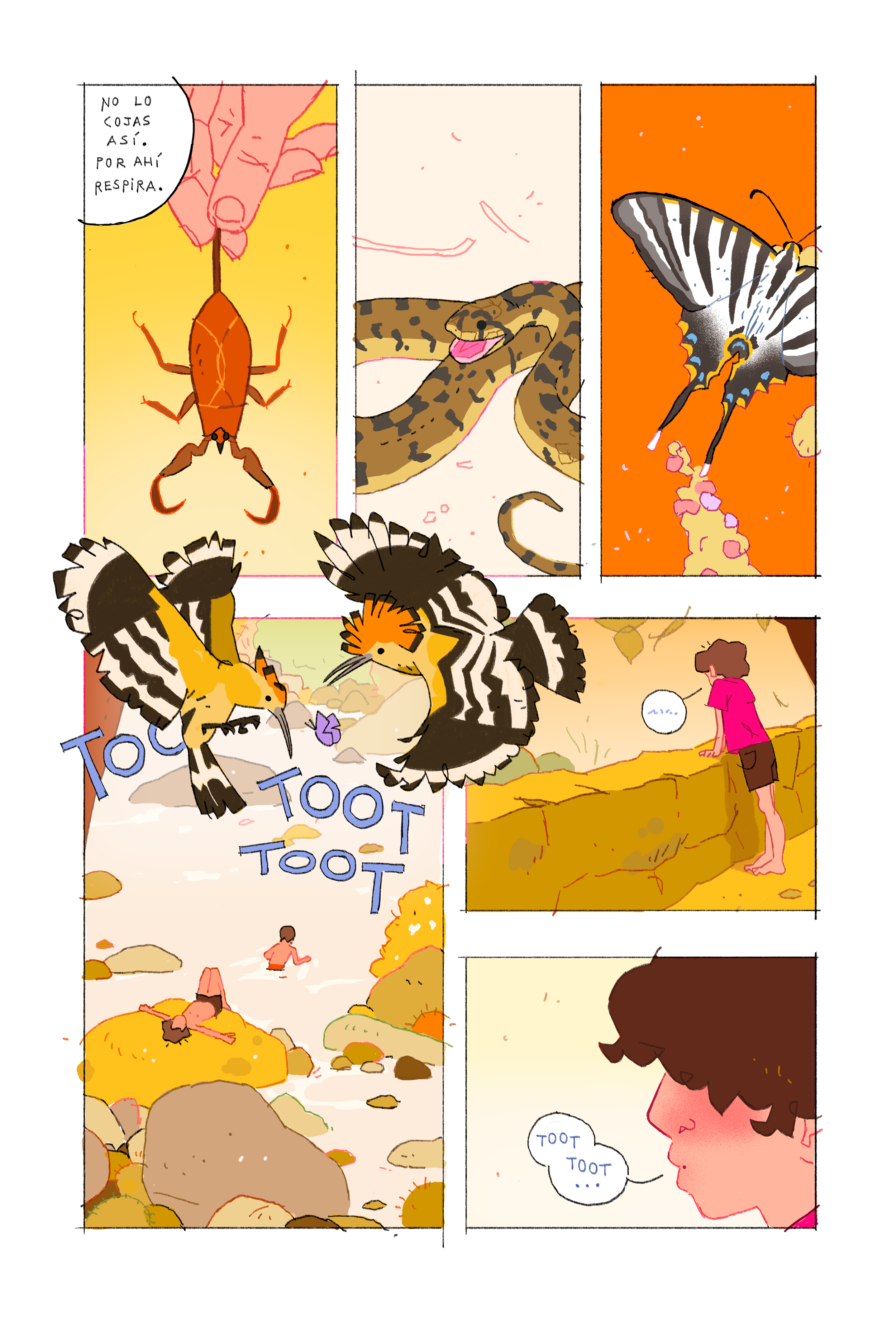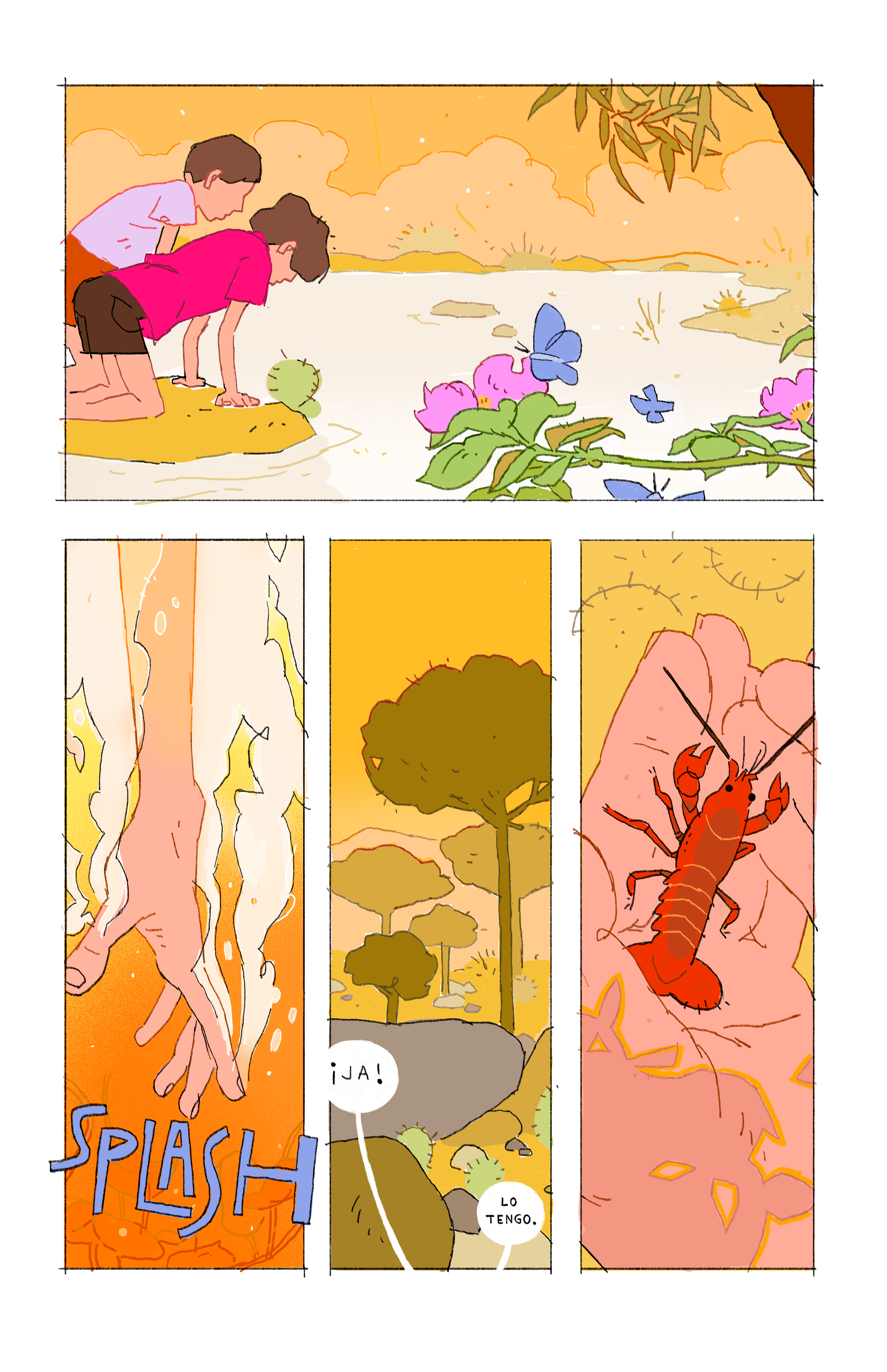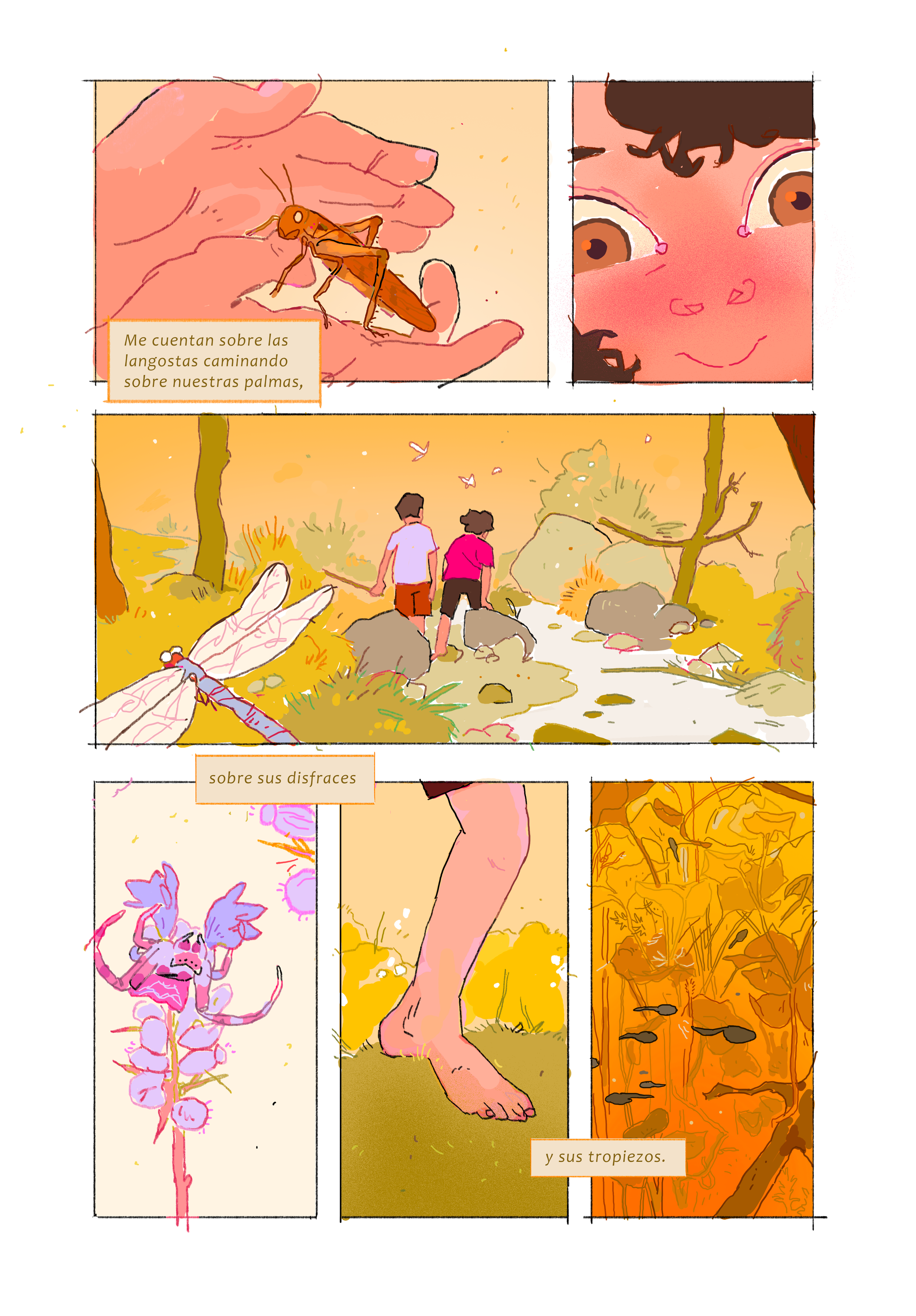 A random mix of pages of Agujas de Pino, a cute poem about the summer days I spent with my brother looking for insects and all sorts of critters when we were kids.
